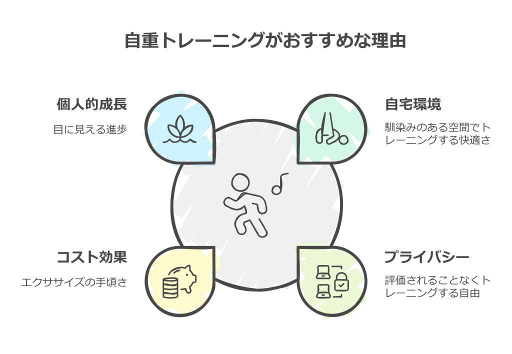 自重トレーニングは、特に内向的な性格の人に最適です。その理由を、具体例を交えてご紹介します。