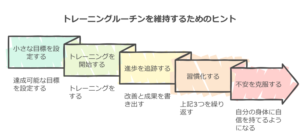 筋トレを始めても、「続けられるか不安…」と思う方も多いかもしれません。ここでは、初心者でも挫折しにくいコツをいくつかご紹介します。